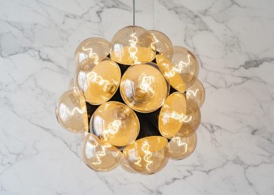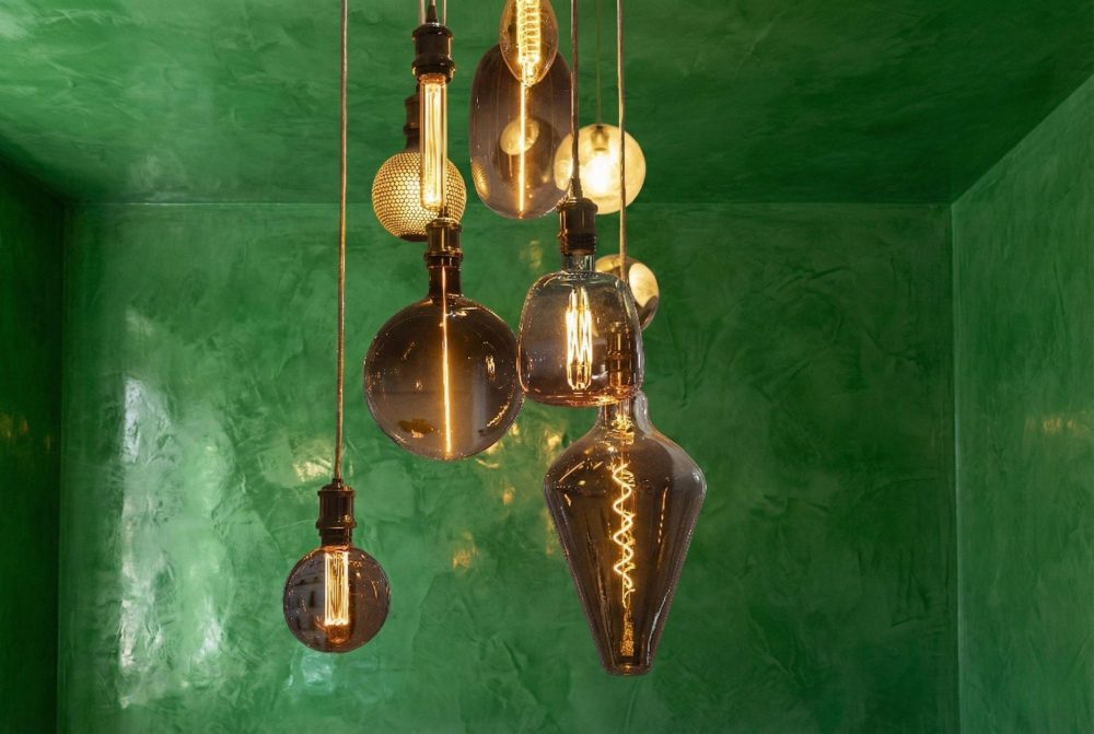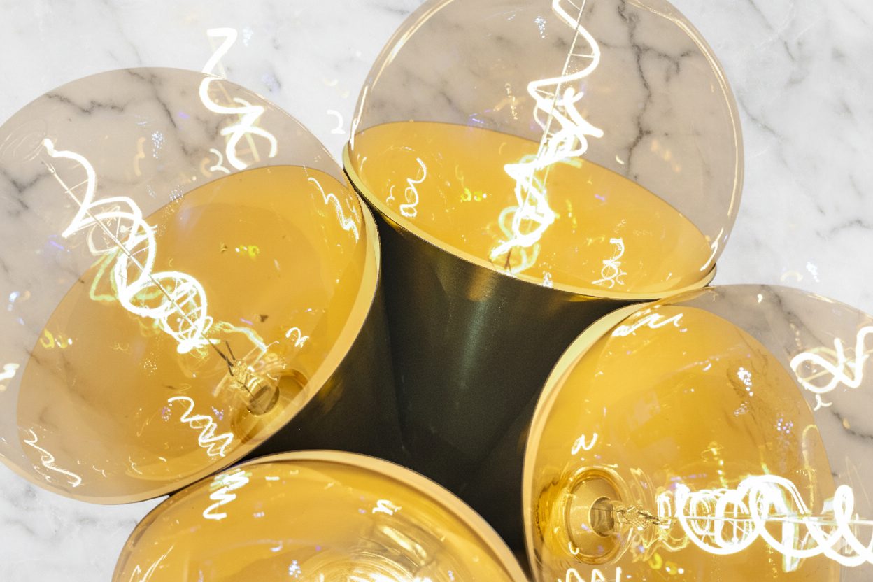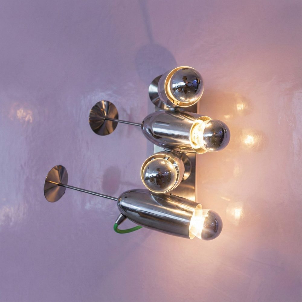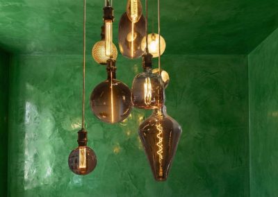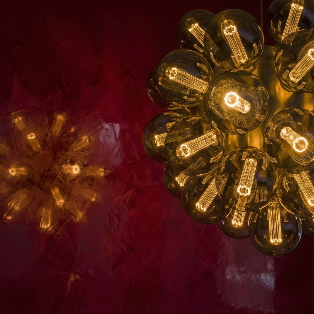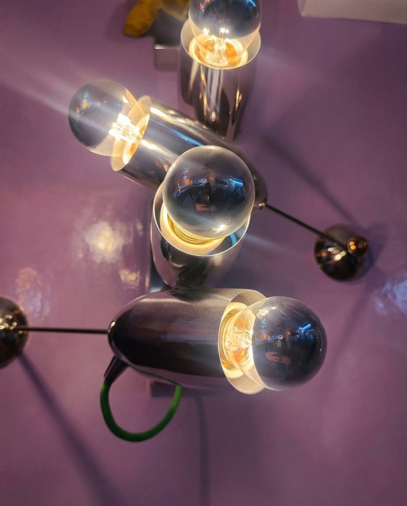 The lighting is completed by four special oval-shaped bulbs, which add a sculptural and contemporary touch to the whole.
