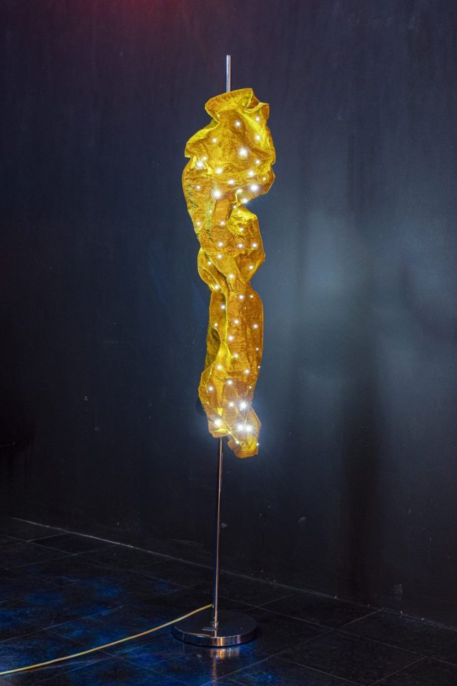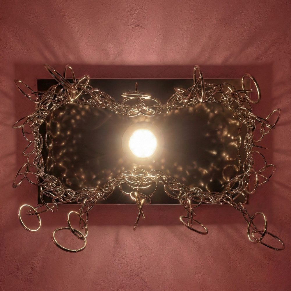 INFINITE is a work of kinetic art, the interweaving of the rings gives the work a sense of movement. Handmade by the artist, the weaving technique emphasises an expressive and minimalist design. This luminous piece of jewellery gives the room an extravagant and opulent character.