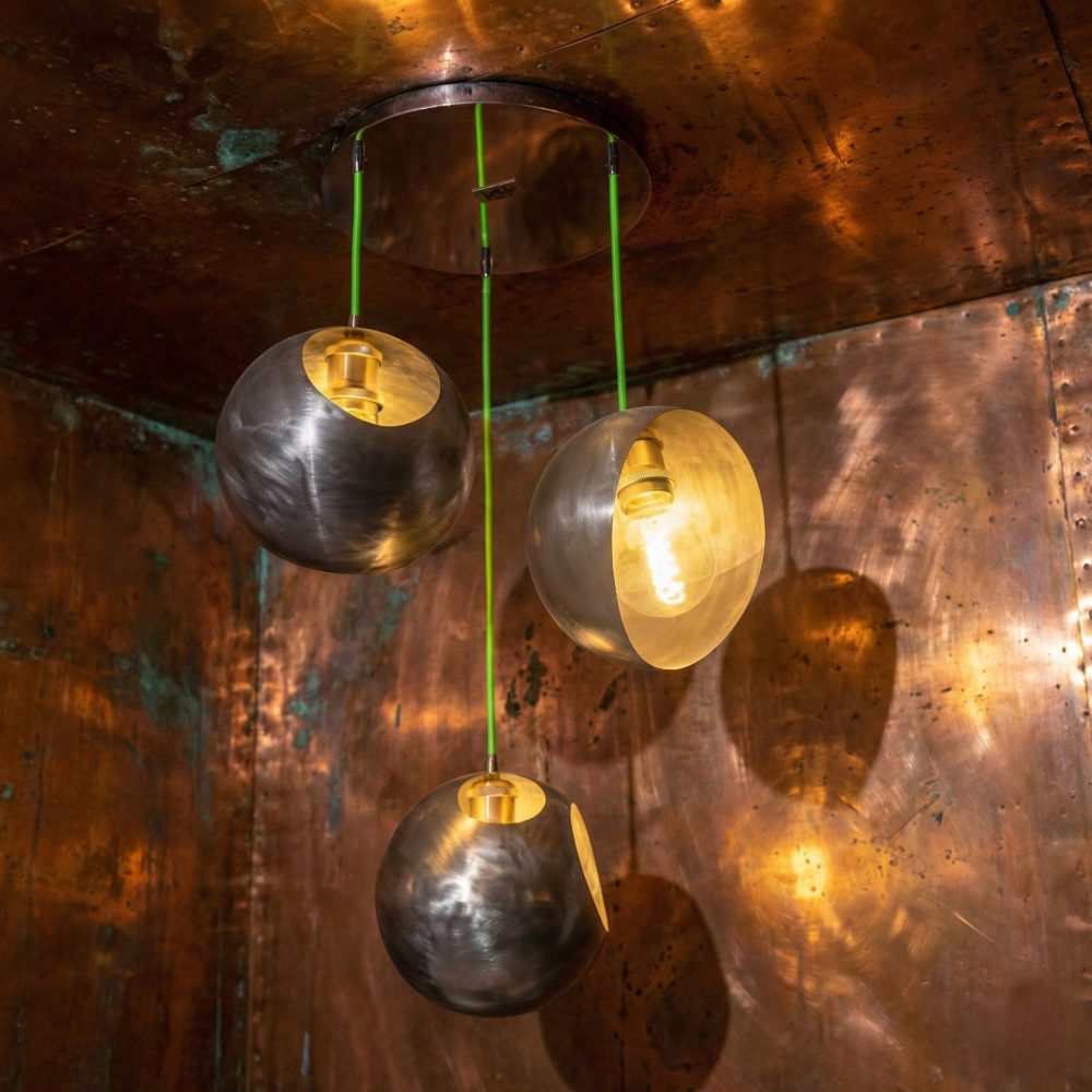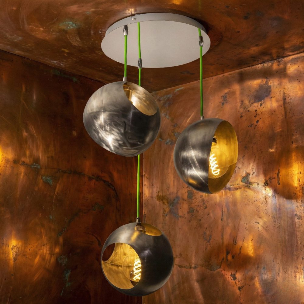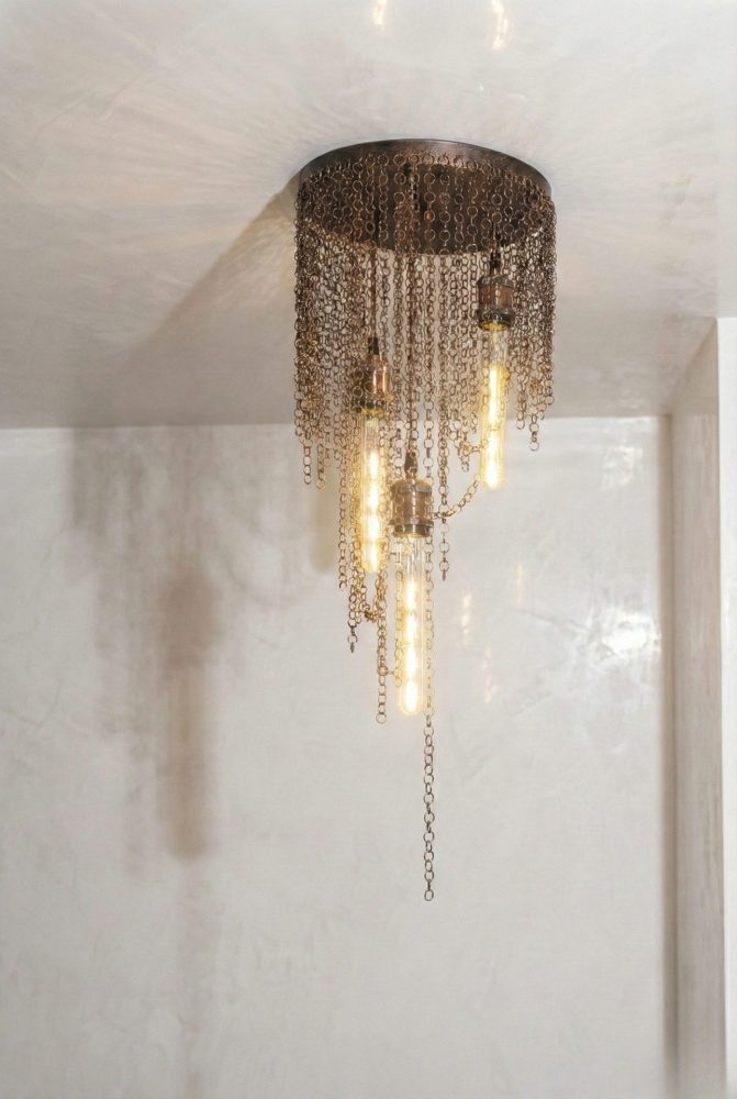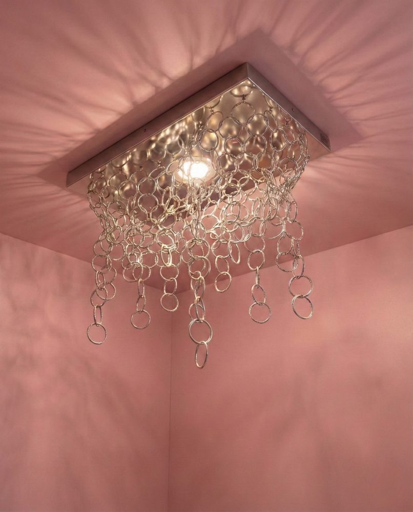A modern, classy chandelier with a vaguely retro flavour. The base consists of a rosette and three ropes from which LED bulbs are hung. The chains of rings installed along the diameter, sway and fluctuate, giving a harmonious and animated effect. Ideal placed in any environment, recommended indoors.