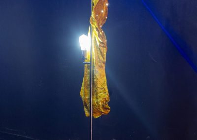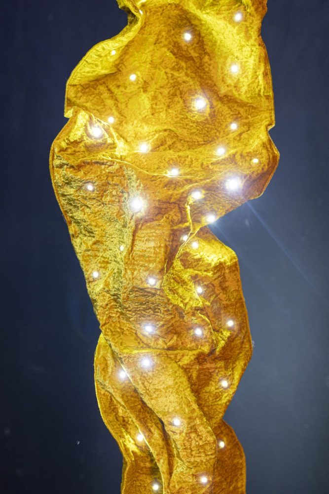 The Firebird is a suspended textile luminous sculpture inspired by the formal lightness of Japanese origami and the powerful musical imagery of Igor Stravinsky’s iconic ballet, to which it pays homage.