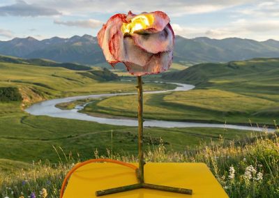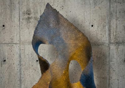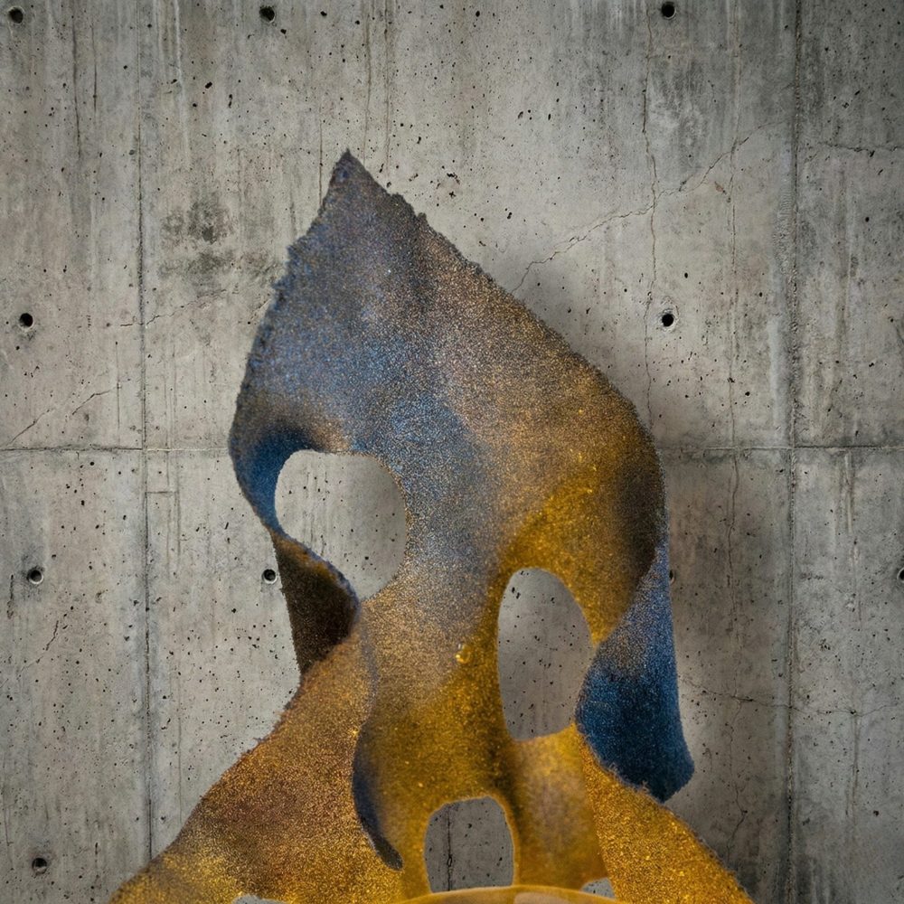 Steel—typically rigid and industrial—is here reimagined as an organic, fluid weave that evokes the cocoon, silent growth, and the anticipation before transformation is revealed.
