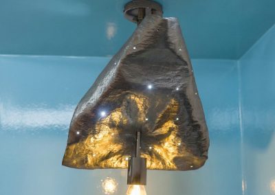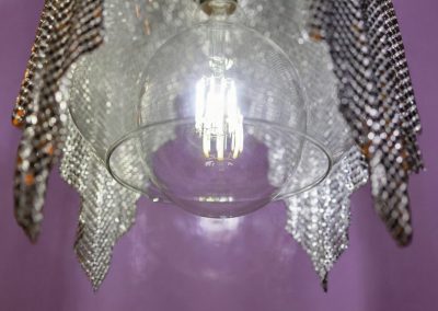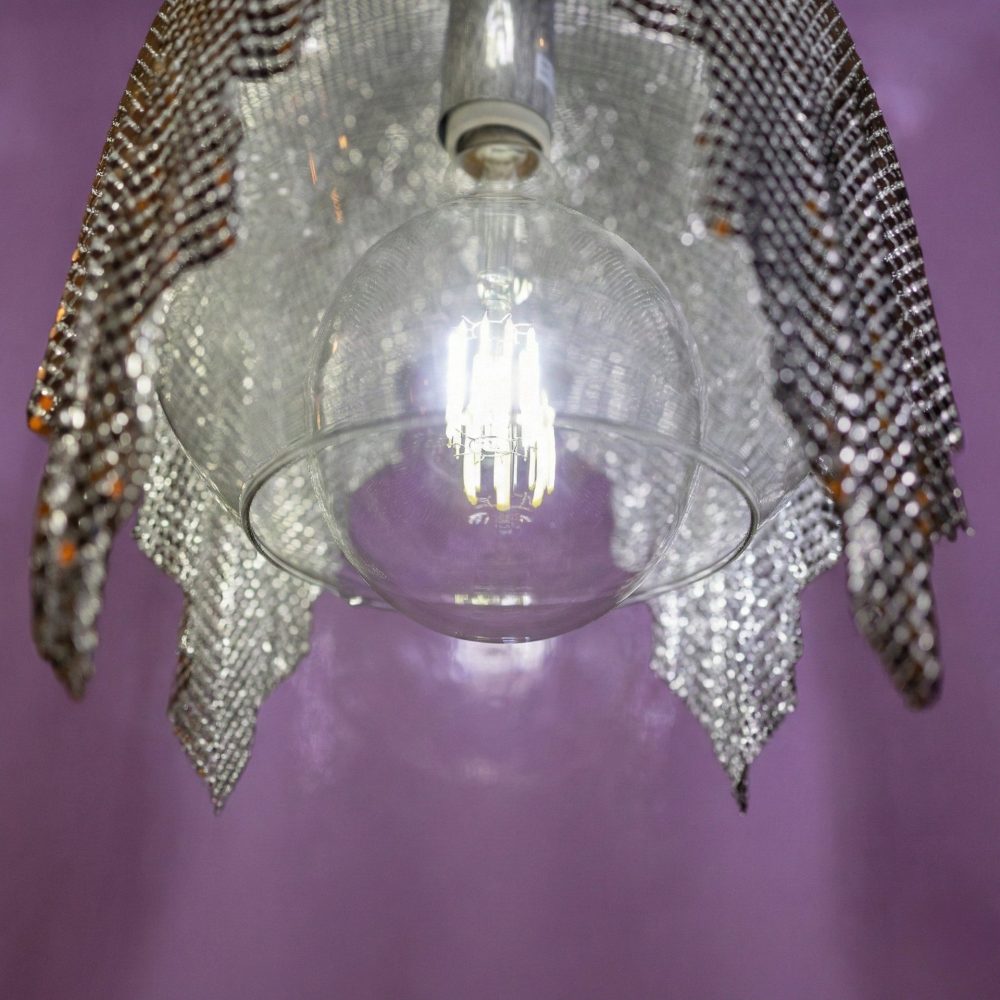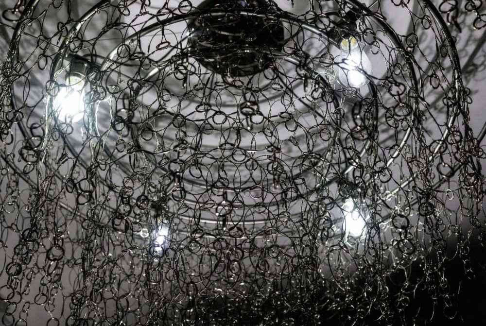 OBJECT: Chandelier in hand-sewn metal mesh fabric on steel box / three 10w LED bulbs