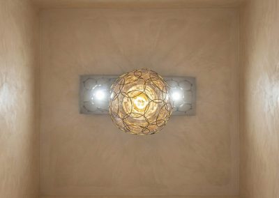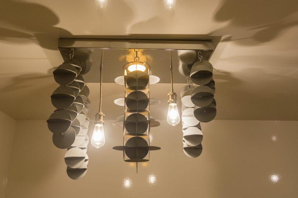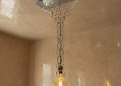 Lampadario da soffitto, che irradia una luce morbida nell’ambiente.