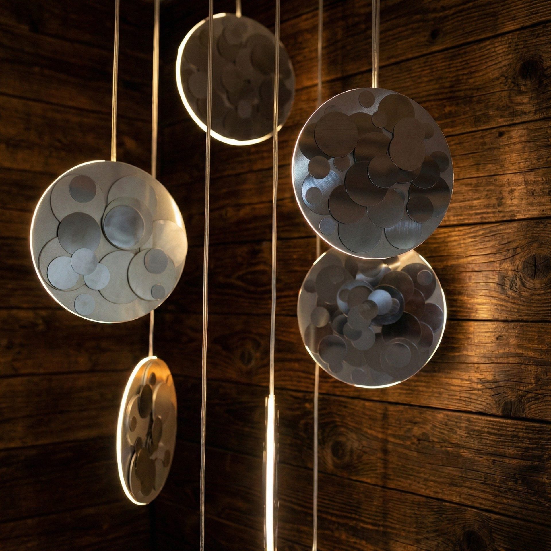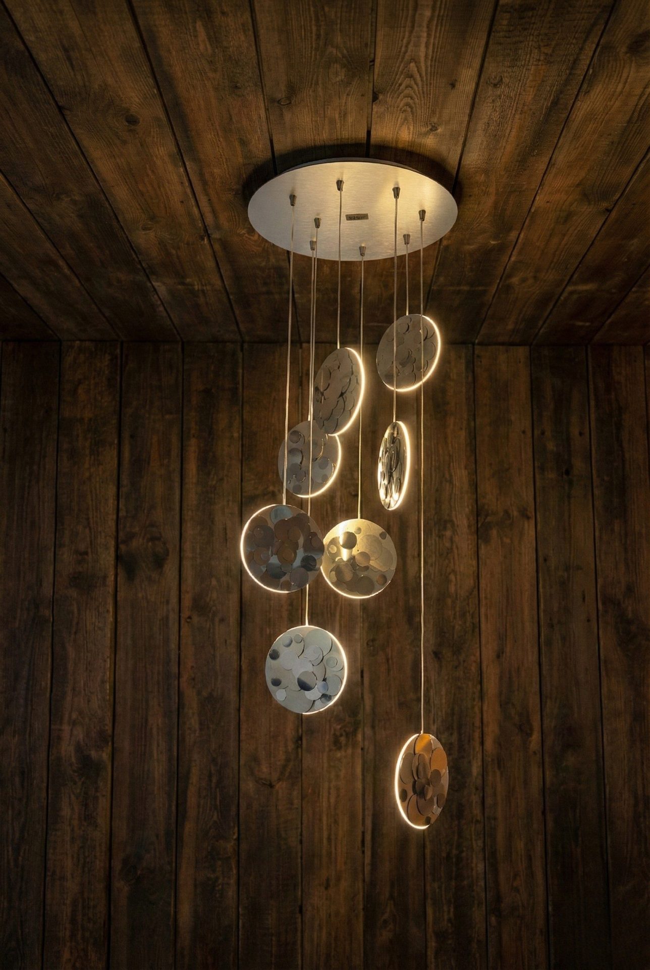 Lampadario da soffitto, composta da eleganti catene di dischi che combinate come gioielli da parete donano