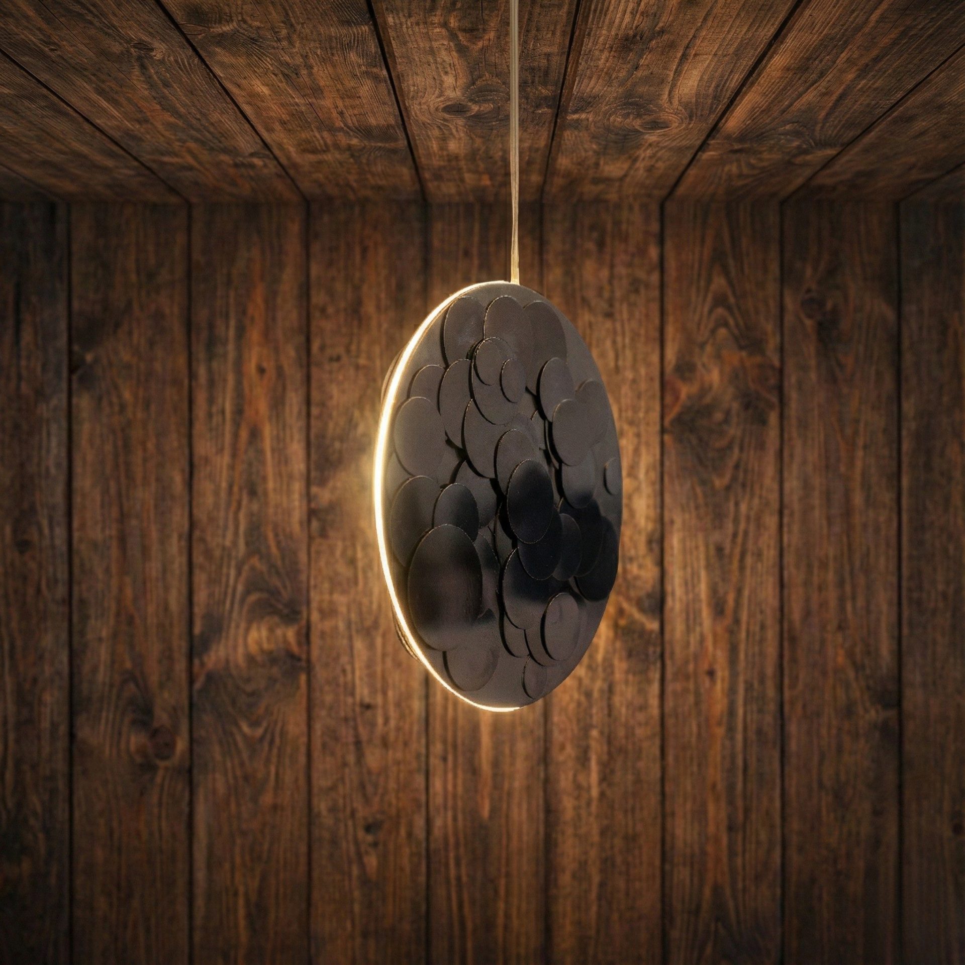 OGGETTO: Lampadario cetene dischi piegati e saldati insieme / lampadina led 10w