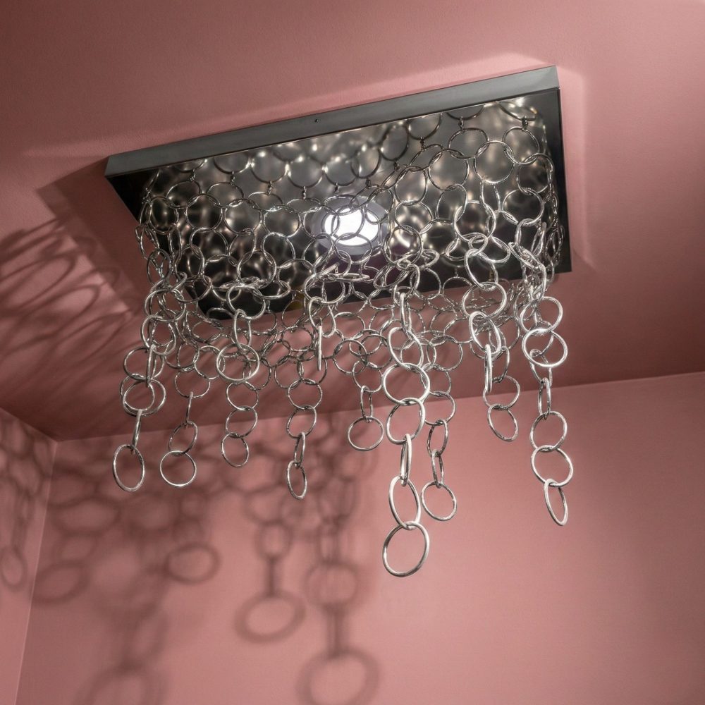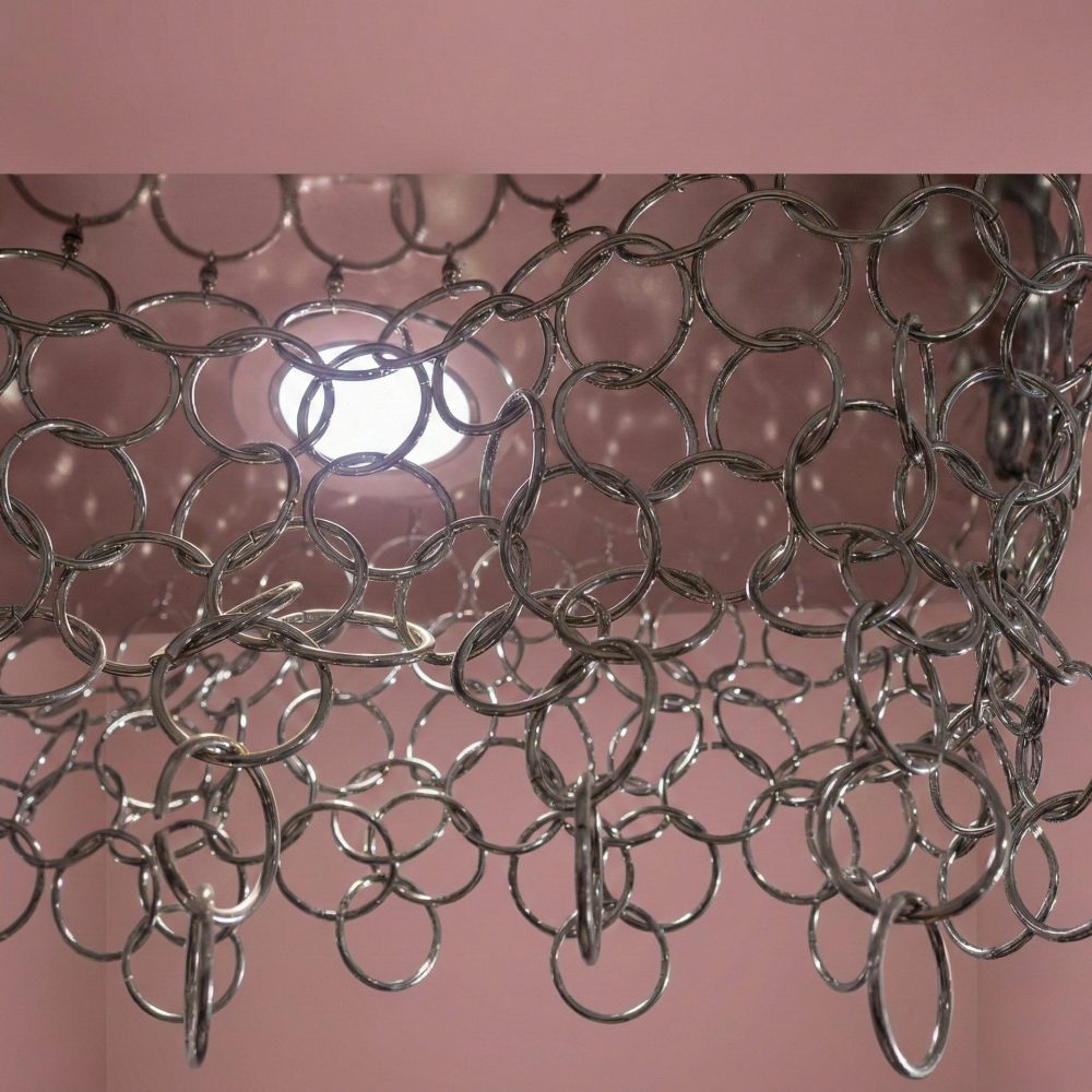 Le catene di anelli installate lungo il diametro, ondeggiano e fluttuano, donando un effetto armonico e movimentato.